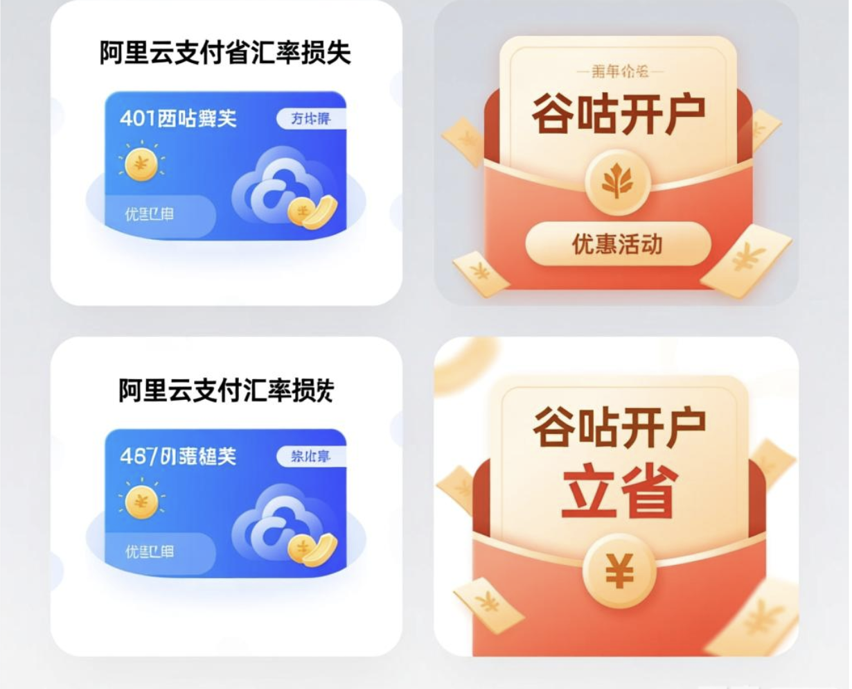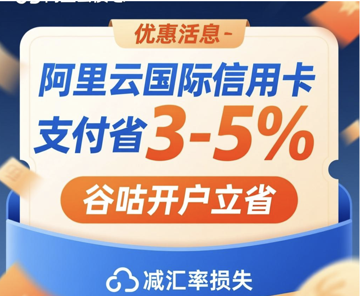 阿里云国际信用卡支付省3-5%汇率损失,谷咕开户立省