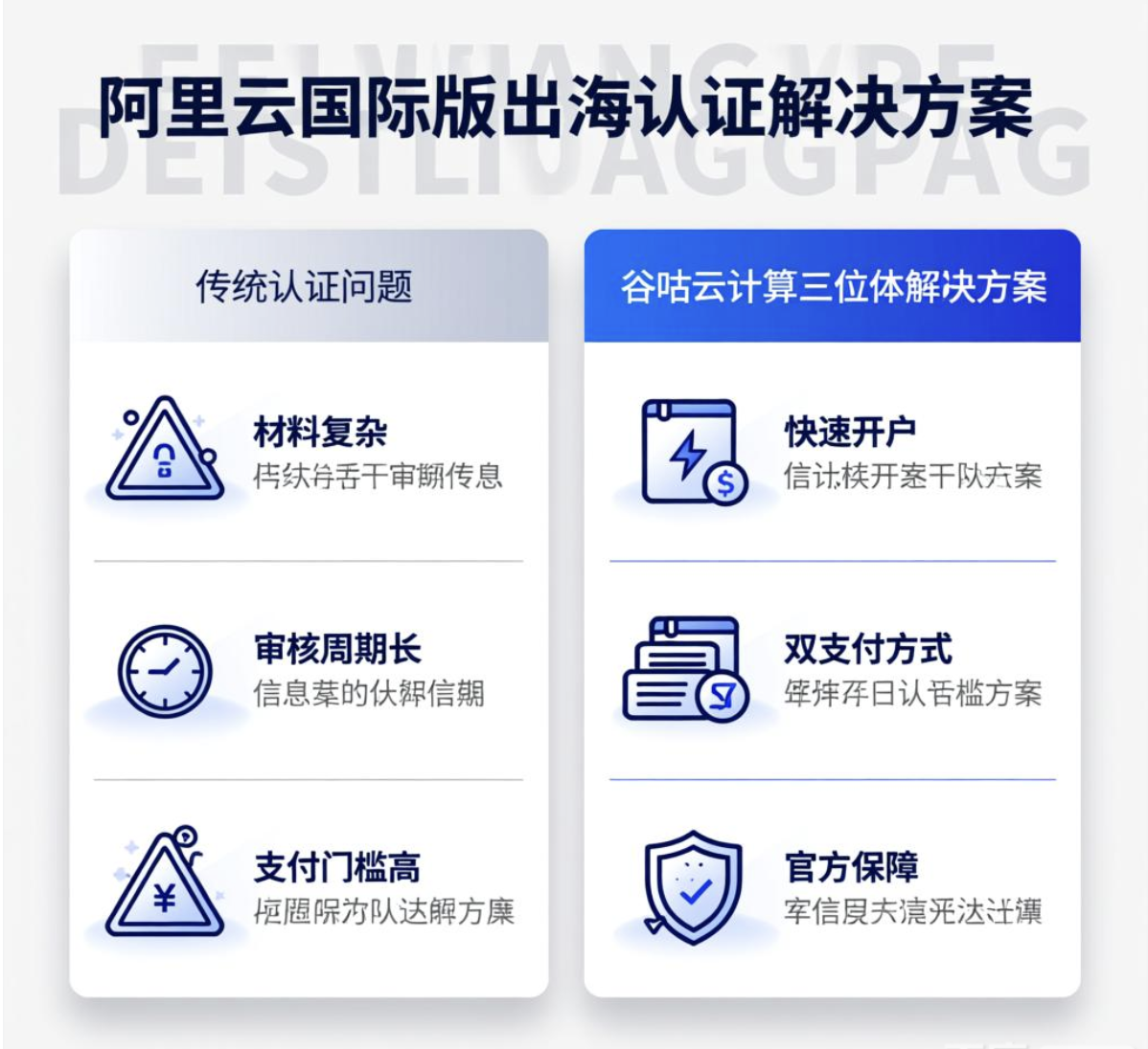随着中国企业加速出海,阿里云国际版成为拓展全球业务的关键基础设施。然而,企业认证过程中的材料复杂、审核周期长、支付门槛高等问题,常导致业务上线延迟30天以上,错失市场先机。本文深度解析传统认证瓶颈,并介绍阿里云国际代理谷咕云计算提供的3分钟快速开户、人民币/USDT双支付、官方合作保障三位一体解决方案,帮助企业3天内完成认证,实现业务快速部署。