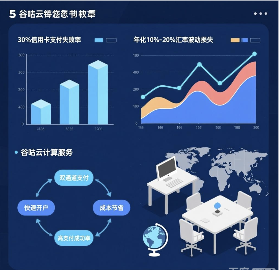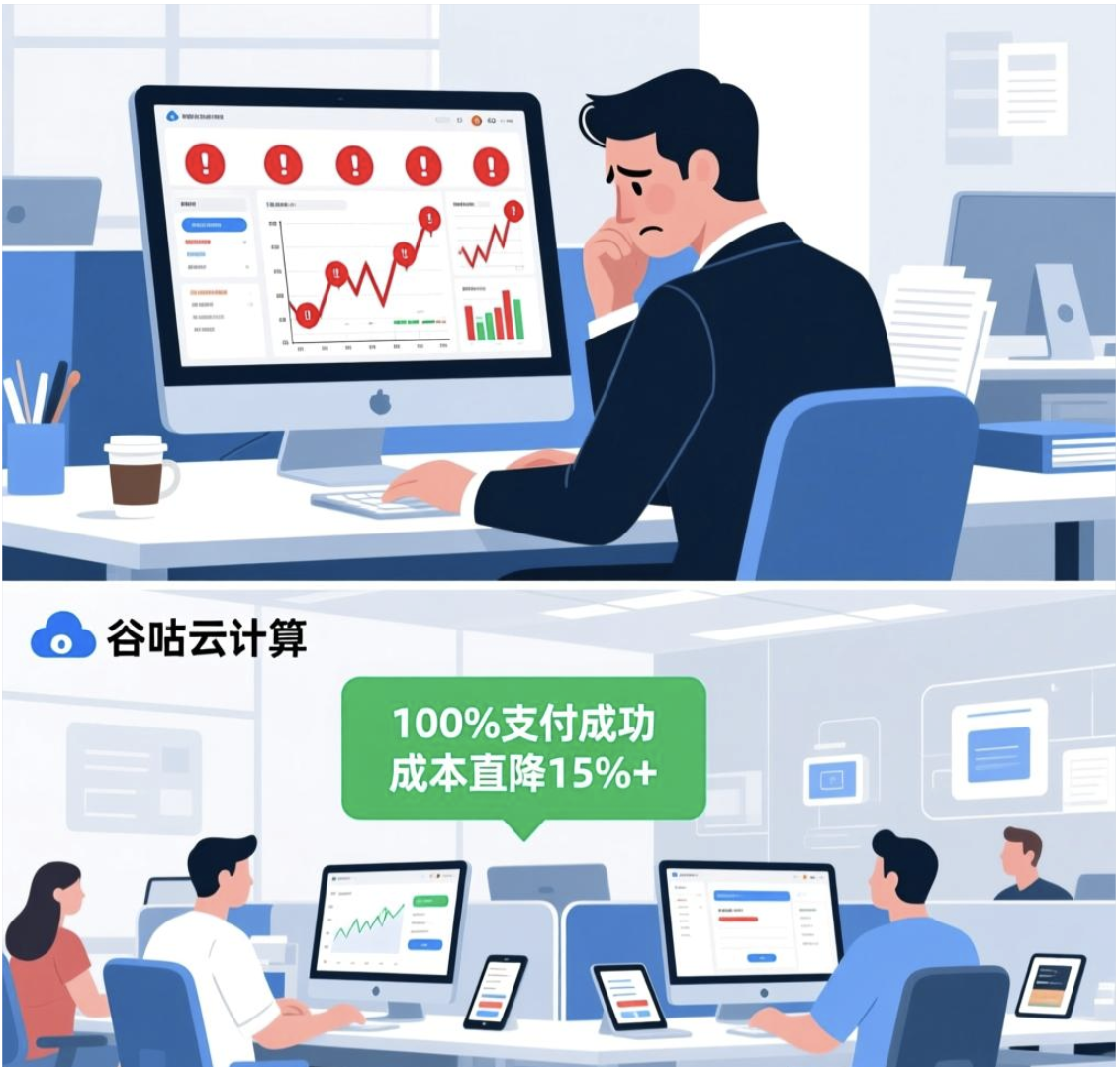 对于使用阿里云国际服务的全球企业而言,支付环节的挑战已成为业务发展的隐形障碍。高达30%的信用卡支付失败率、不可控的汇率波动损失(年化可达10%-20%),以及繁琐的海外身份认证流程,不仅增加了运营成本,更威胁着业务连续性。本文将从技术根源剖析这些痛点,揭示传统解决方案的局限,并介绍谷咕云计算如何通过创新的开户与支付方案,帮助企业实现3分钟快速开户、人民币/USDT双通道支付,稳定节省15%以上成本,确保100%支付成功率。