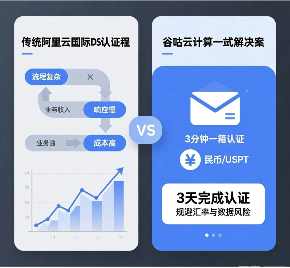 阿里云国际对RDS数据库的认证要求严格,变更需重新提交材料,传统方式依赖海外身份证明和支付,流程复杂、响应慢、成本高,每延迟一天可能损失数万元业务收入。面对这一痛点,阿里云国际代理谷咕云计算提供一站式解决方案:3分钟邮箱认证开户、支持人民币/USDT支付、官方合作保障稳定性,帮助企业在3天内完成认证变更,确保项目零延迟交付,规避汇率风险和数据安全隐患。
