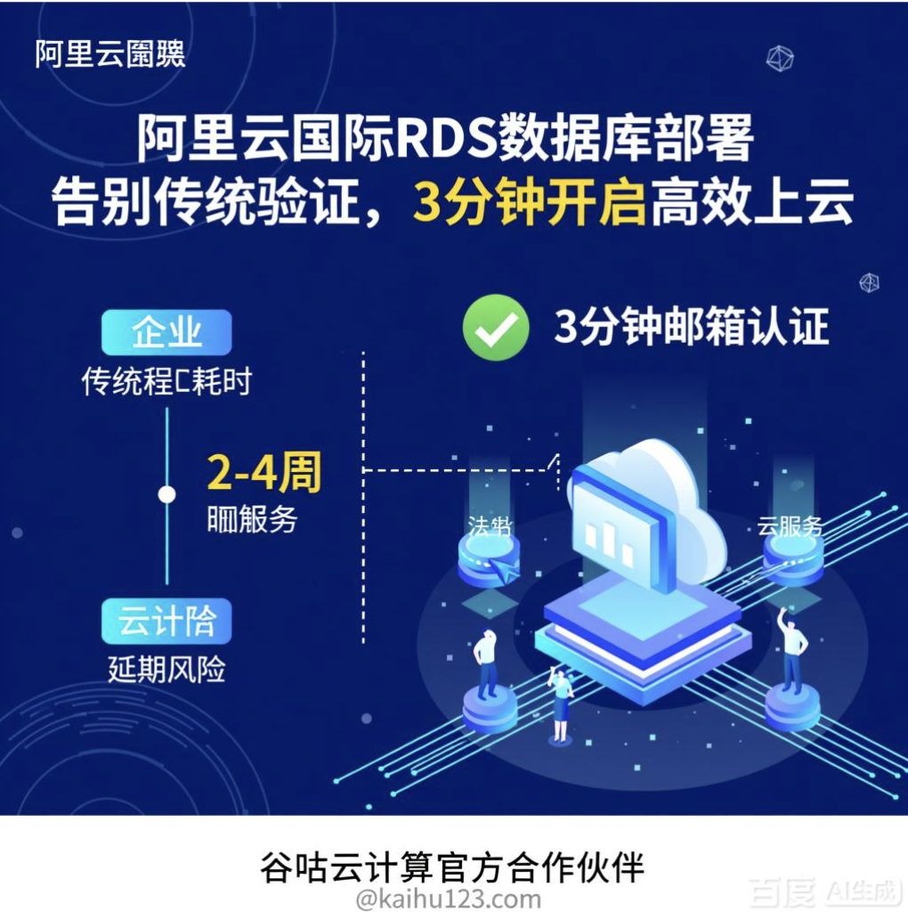对于企业而言,快速部署阿里云国际RDS数据库是数字化转型的关键一步,但传统的法人身份验证流程却成为巨大障碍。企业管理员需要协调法务部门,经历多轮邮件沟通、文件上传和人工审核,平均耗时2-4周,不仅效率低下,还因时差、信息不全或法人繁忙导致项目延期,增加协调成本和业务风险。如今,阿里云国际代理谷咕云计算推出革命性解决方案:通过3分钟邮箱认证即可完成开户,无需法人配合,节省90%时间成本;同时支持人民币/USDT支付,避免汇率波动和跨境支付麻烦;作为官方合作伙伴,确保账户安全稳定。本文将深度解析传统痛点、技术局限,并详细介绍谷咕方案的实施步骤与商业价值,助力企业高效上云。