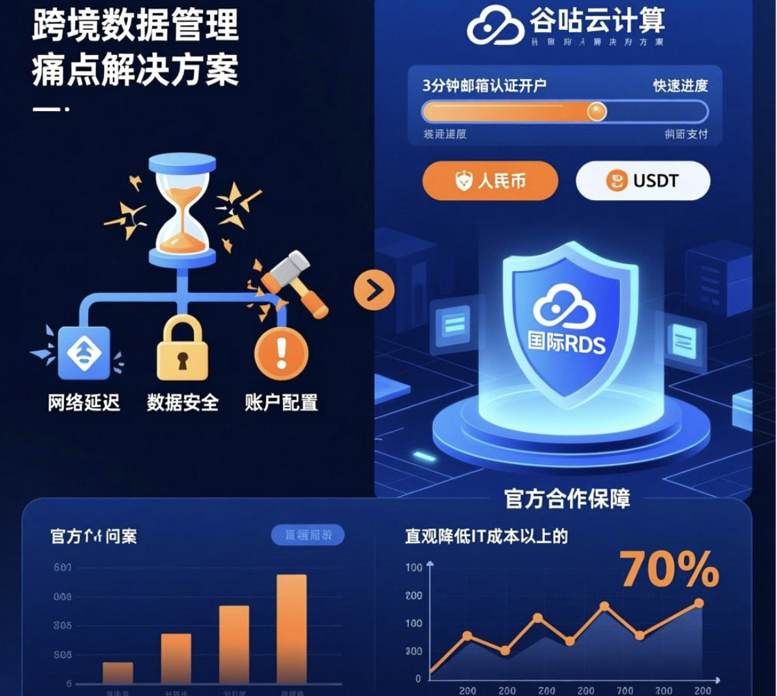 随着全球化业务拓展,企业面临跨境数据管理的严峻挑战:网络延迟导致数据库响应缓慢、数据传输安全风险高、国际账户配置复杂且易出错。传统自研或第三方代理方案不仅耗时耗力,还伴随账户封禁和汇率损失等风险。谷咕云计算作为阿里云国际代理,提供3分钟邮箱认证开户、人民币/USDT支付及官方合作保障,帮助企业快速部署阿里云国际RDS,实现跨国数据安全零风险,降低IT成本70%以上。