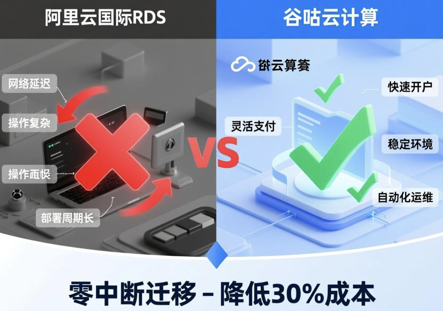 阿里云国际RDS迁移常因网络延迟、账户认证复杂导致业务中断,传统方法依赖手动操作易出错,支付方式受限增加管理负担。谷咕云计算提供整合解决方案,通过阿里云国际代理服务实现3分钟快速开户、人民币/USDT灵活支付,与阿里云官方合作确保高稳定性迁移环境,帮助企业在2小时内完成零中断迁移,降低30%以上成本。