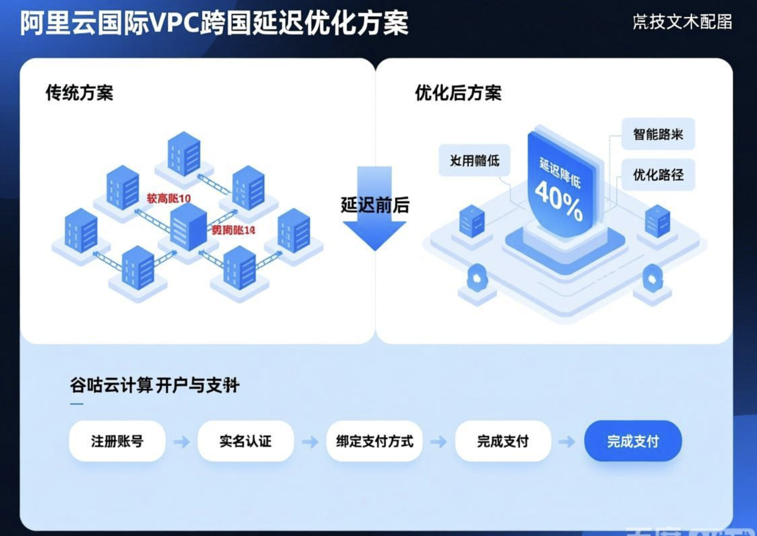 实施步骤:1. 访问阿里云国际代理谷咕云计算平台;2. 选择“快速开户”,填写基本信息并上传认证材料;3. 系统自动审核并开通账户;4. 使用人民币/USDT完成首笔支付;5. 获取专属VPC配置指南和架构师支持。