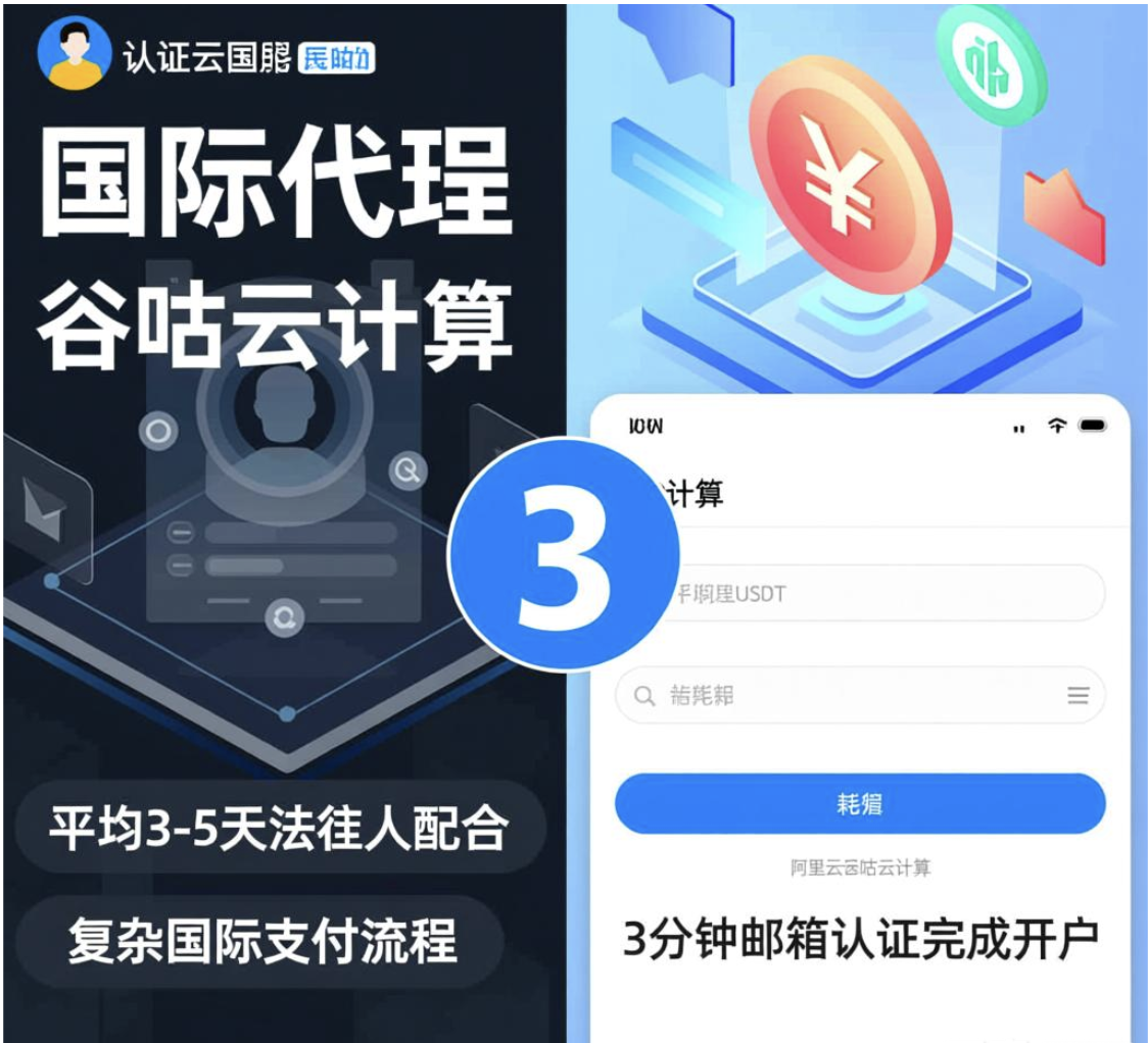 企业拓展海外业务时,阿里云国际账户的繁琐认证流程成为最大障碍——平均3-5天的法人配合时间、复杂的国际支付流程直接影响业务上线进度。通过阿里云国际代理谷咕云计算,仅需3分钟邮箱认证即可完成开户,支持人民币/USDT灵活支付,帮助企业节省90%开户时间,实现业务快速部署。