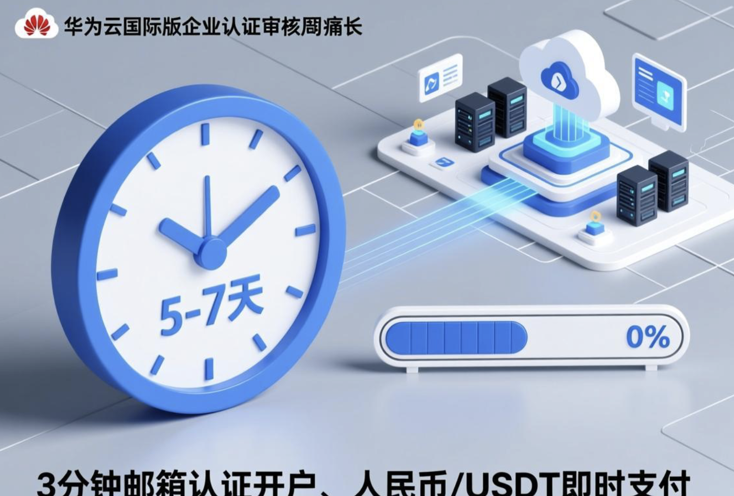 对于急需部署海外业务的企业而言,华为云国际版的企业认证审核周期长达5-7天,已成为阻碍业务快速上线的关键瓶颈。这不仅导致宝贵的云资源无法及时启用,更可能因项目延迟造成直接经济损失。传统解决方案依赖复杂的人工审核与缓慢的国际支付,进一步加剧了时间成本与不确定性。本文将深度剖析这一痛点根源,并揭示如何通过华为云国际代理谷咕云计算提供的创新方案,实现3分钟邮箱认证开户、人民币/USDT即时支付,从根本上规避业务延迟风险,确保项目快速、稳定启动。
