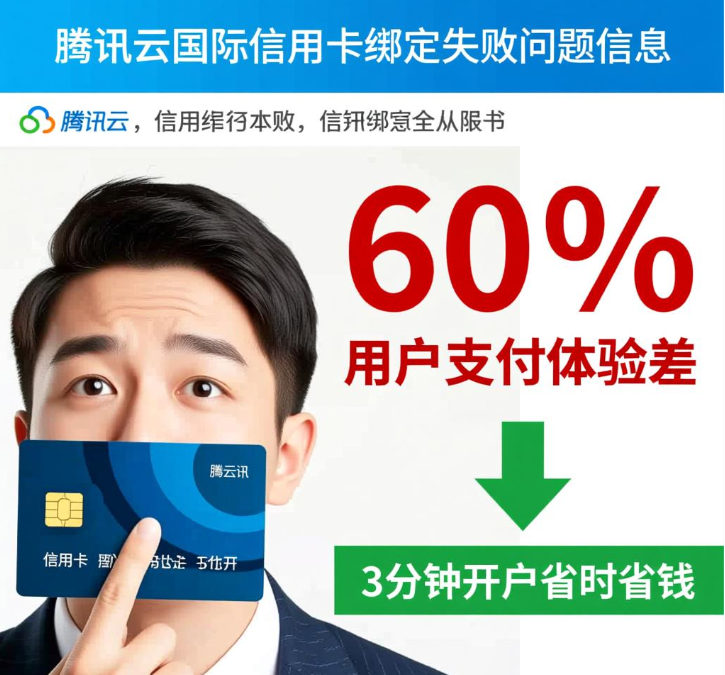 腾讯云国际信用卡绑定失败?60%用户支付体验差,3分钟开户省时省钱